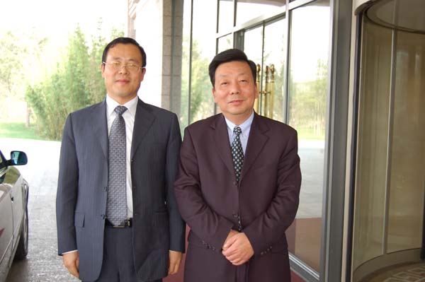 11月4日下午12时40分,教育部本科教学工作水平评估专家、长春理工大学校长于化东教授(左)抵达我校。校党委书记陆勤毅亲往机场迎接,并与于化东教授合影留念。