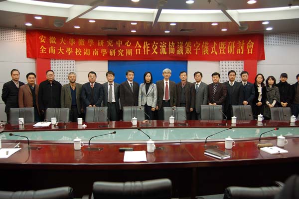 11月22日至24日,应徽学研究中心邀请,我校姊妹学校——韩国全南大学以宋净民教授为团长的湖南学研究团和该校史学科bk事业团一行9人来我校访问交流。23日上午,副校长吴春梅在龙河校区逸夫图书馆第三会议厅主持签字仪式,全南大学湖南学研究团、史学科bk21事业团分别与我校徽学研究中心和历史系签署了中韩文本的合作协议书。校党委宣传部、外办、徽学研究中心和历史系的负责同志,教师及研究人员代表出席了签字仪式。随后,中韩学者围绕历史上的地区交流与文化主题举行了小型学术研讨会。