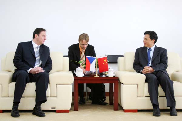 11月27日上午,捷克乌斯季州副州长费亚拉一行访问我校。校长黄德宽、副校长王源扩在磬苑校区行政楼会见室会见了费亚拉一行。学校有关部处院系负责同志会见时在座。会见中,黄德宽对费亚拉副州长来访表示欢迎,并向客人介绍了我校建设发展情况。费亚拉介绍了乌斯季州经济社会发展情况,表达了加强与安徽大学合作的愿望和意向。捷克驻沪总领事米兰·胡裴才随团访问。随后,费亚拉一行在王源扩等陪同下,参观了磬苑校区文典阁,听取了学校图书馆负责同志关于馆藏情况的介绍。