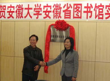 12月7日,我校省图书馆教学实习基地签字暨揭牌仪式在安徽省图书馆举行。省文化厅副厅长田传江、我校副校长吴春梅为实习基地揭牌并致辞。省图书馆馆长易向军、我校教务处处长李进华等出席了仪式。