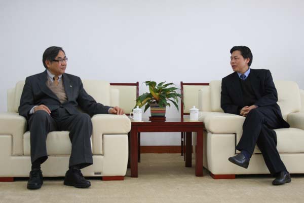 12月20日上午,美国马里兰大学孔子学院院长刘全生在省外办主任李永胜陪同下访问我校。校长黄德宽在行政楼b201会见室会见了刘全生一行。