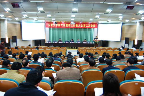 会议还听取了校党委副书记、第六届教代会执委会副主任叶华所作的《教代会执委会2007年度工作报告》,财务处处长李晓玲《关于安徽大学2007年度财务决算、2008年度财务预算草案的报告》,教代会执委会副主任、提案工作委员会主任茆邦寿的《提案工作报告》。同时,提交会议审议讨论的文件有《安徽大学教职工代表大会条例(修订稿)》及条例修订情况的说明。