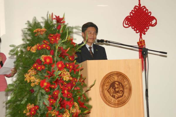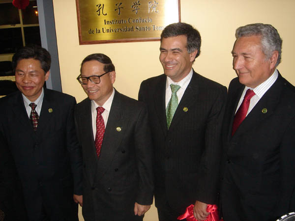 黄德宽说,中国与智利两国友好历史源远流长,两国人民情谊深笃,尤其是近年来两国在政治、经济、贸易、教育和文化等领域交流密切,成果丰硕。安徽大学与圣托马斯大学于2001年12月正式建立姊妹关系,自那时起,双方交往密切,友谊日深,都在为寻求教育合作发展的途径孜孜不倦地努力。去年,智利前总统、现任议长弗雷先生率团亲临我校,为安徽大学圣托马斯教育学院和拉美文化研究中心揭牌。而作为各国朋友了解中国、特别是中华文化的一个重要窗口,世界各地的孔子学院正在成为增进中国人民同各国人民之间相互信任和友谊的桥梁与纽带,正在为发展中国与各国的友好关系、促进世界多元文化发展、构建和谐世界贡献力量。
