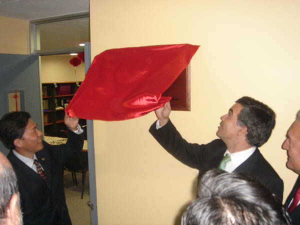 中国驻智利使馆临时代办王连根、智利第五大区区长伊万·德拉马萨、圣托马斯大学比尼亚德尔马校区校长何塞·魏因斯布恩,以及智利外交部官员、外国部分驻智使节等出席了揭牌仪式。