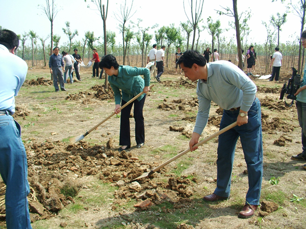 5月11日上午,磬苑校区社科楼南侧彩旗招展。政治学系88级公共关系专业的40多位同学和当年的老师一起挥锹,在这里种下了20棵香樟树,向母校80年华诞献礼。据了解,这些同学是5月10日从祖国四面八方回到母校参加入学20周年聚会的。他们相约在20年前报到的龙河校区文东楼前集结,与当年的老师座谈,在毕业留影的地方合影,并重回学生食堂共进晚餐。在参观了磬苑校区校园后,他们无不为母校新貌倍感欣喜。