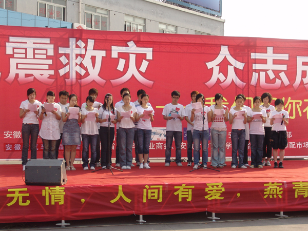 5月16日,我校艺术学院与省红十字会、合肥电视台、合肥交通广播等单位在合肥汽车配件城联合举办大型义演,募得资金100多万元,支援四川抗震救灾工作。