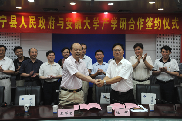 校科技处、人文社科处、物理与材料科学学院、化学化工学院、电子科学与技术学院、计算机科学与技术学院、生命科学学院、计算智能与信号处理重点实验室等单位负责人,怀宁县县委常委、副县长李斌以及县发改委、财政局、科技局、经委、政府办公室负责人等参加了签约仪式。