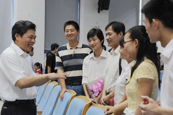 图为校长黄德宽与新老学生校长助理亲切交谈。