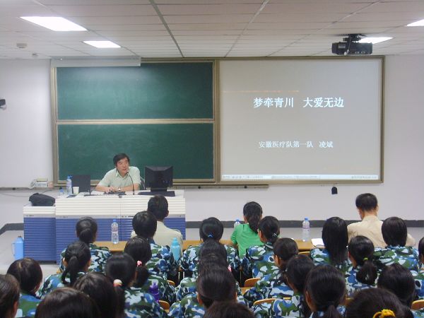 8月25日下午,省立医院副院长、安徽赴四川地震灾区医疗队第一队负责人凌斌来我校磬苑校区为07级同学做了题为《梦牵青川,大爱无边》的报告。