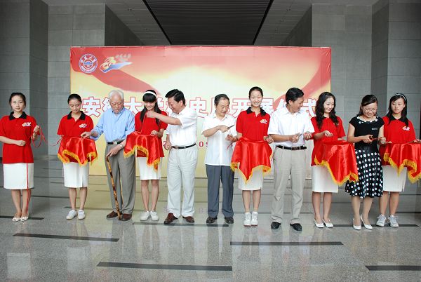 在大家热烈的掌声中,陆勤毅、黄德宽、解放前老校友代表张珊教授、学校迁建合肥后教师代表刘永生教授(原副校长)和学生代表、校长助理刘晶晶同学共同为校史展开展剪彩。