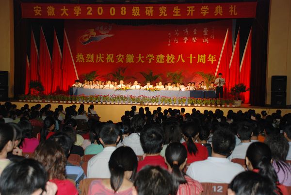 校党委书记陆勤毅、校长黄德宽、校党委副书记叶华、校纪委书记杨家芹和副校长杜先能、王源扩、李仁群、王群京、吴春梅等出席开学典礼并在主席台就座。各研究生培养单位和机关部处负责同志,与2008级70名博士研究生、1491名硕士研究生一起出席了开学典礼。开学典礼由王群京主持。