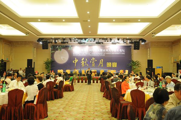 9月14日是中国传统节日中秋节。这天晚上,合肥皓月当空,明珠国际大酒店会议中心沉浸在欢乐的气氛里。学校在这里隆重举行中秋赏月晚宴,欢迎前来参加亚洲大学校长论坛和世界大学校长对话的代表们。校领导及相关部处、院系负责同志出席了欢迎晚宴。
