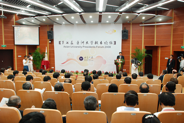 黄德宽在致辞中代表全校师生员工向前来参加论坛的各位嘉宾及大学代表表示欢迎和问候,介绍了我校概况及近年来在各方面尤其是国际交流方面取得的重要成就。他说,高等教育国际化已成为当前世界教育发展不可逆转的潮流,如何借鉴世界高水平大学的办学机制和运行模式,建立起现代大学管理制度,促进学校的可持续发展,这将成为大学校长们共同面临的难题。而亚洲大学校长论坛在亚洲高校相互联系、沟通信息、交流经验以及共同发展上发挥着重要作用,祝愿本届论坛圆满成功。
