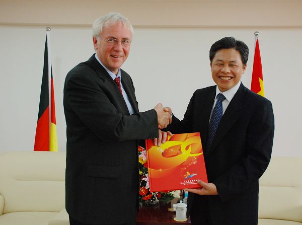 罗根林表示很高兴到安大访问,同时表达了与安大拓展合作关系的意愿。他指出,当今世界进入了国际化的时代,高等院校的教师和科研工作者都应是国际性的人才。希望这次访问,对增进两校之间的相互了解和在德语教学、艺术领域等方面的合作是一个良好的开端。他同时建议,通过学生短期互换,让中德学生了解对方,为未来两校合作打下基础。