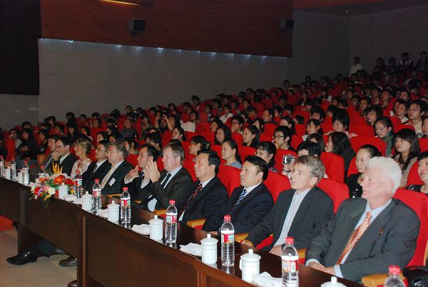 德国下萨克森州科文部长施特拉特曼、奥斯纳布吕克大学校长罗林根、希德斯海姆大学副校长斯杜茨等德方代表,省教育厅厅长程艺,校党委书记陆勤毅、副书记叶华、副校长杜先能与师生一起聆听了音乐会。