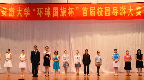 比赛分“自我介绍”“导游词讲解”“才艺展示”等三个环节。参加决赛的15名同学来自全校各院系。选手们带着自信的笑容,导游风格各具特色,仿佛将在场观众带到了芜湖天门山、合肥欧风街;才艺展示环节的歌曲串烧、诗歌朗诵、吉他弹唱等,形式精彩纷呈,更是展现了当代大学生昂扬向上的精神风貌。在经过激烈角逐,比赛最终决出了一、二、三等奖。