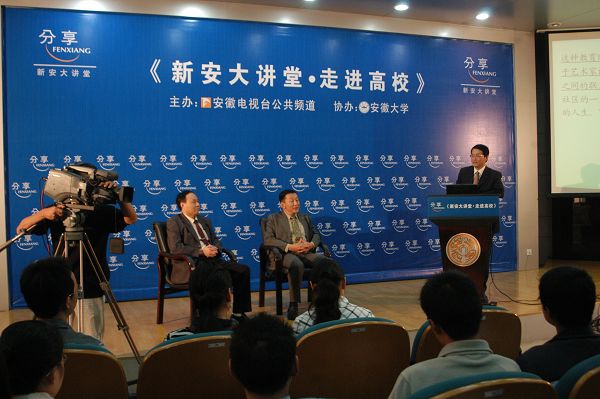 10月18日,安徽电视台公共频道新安大讲堂栏目组走进我校,在龙河校区逸夫图书馆第一报告厅成功录制了一期以《科学与艺术》为主题的节目。