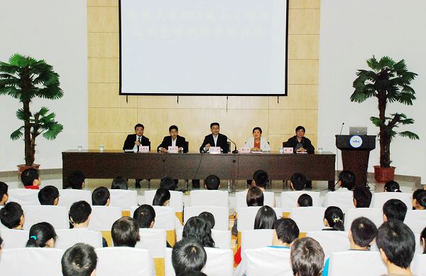 本网讯(记者任自灵 摄影袁中锋)11月3月下午,2008级新生导生聘任仪式暨培训班开班典礼在磬苑校区博北d101报告厅隆重举行。这项旨在发挥高年级学生对新生传帮带作用的导生工作,是我校大学生启航工程重要项目之一。