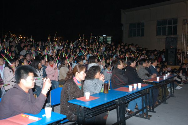 本网讯(记者 冯华周)11月21日晚,我校江淮学院举办2008迎新篝火晚会。校党委宣传部、工会等部门负责同志与江淮学院师生一起观看了晚会。随着江淮学院院长张胜义宣布晚会开始,篝火被点燃,烟花照亮了夜空。晚会在舞蹈《欢天喜地》中拉开序幕,节目异彩纷呈。各路好手纷纷登台,共表演了民族舞蹈、独唱、小品、音乐剧、舞蹈、手语、太极、大合唱、动漫等22个节目。台下观众情绪热烈,挥舞着荧光棒,不时跟着节拍唱起歌来。最后,晚会在大合唱《飞来的雪花》中落下了帷幕。
