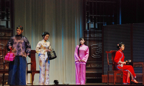 本网讯(记者鲍晓明 摄影袁中锋)12月10日晚,艺术学院05表演班毕业汇报演出剧目《金锁记》在磬苑校区艺术楼小剧场内拉开序幕。副校长杜先能,校直相关部门负责人以及省高校干部第二十三期培训班部分学员观看了演出。