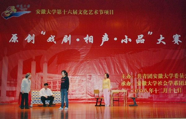 此次大赛由校团委主办、社会学系团总支承办。大赛邀请了省戏剧家协会副主席及秘书长、国家一级编剧候露老师,安徽卫视《相约花戏楼》栏目统筹、制片人及导演谢丽雅老师,安徽卫视《相约花戏楼》栏目导演金斯倜老师,安徽戏曲广播主持人许敬老师,安徽大学国际教育学院院长孙勇老师担任评委。候露老师并为大赛作了点评。