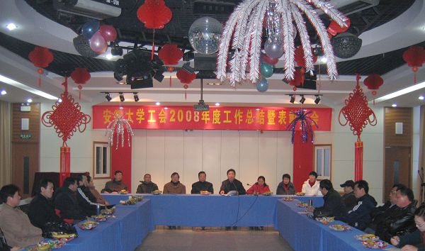 校工会主席郁建民代表工会委员会向大会报告了2008年度工会工作和工会经费收支情况。他说,过去的一年,在学校党委的领导下,经过全体工会干部和会员的共同努力,工会工作取得长足进步,先后获得省教育工会“模范教工之家”、“工会财务工作标兵单位”称号,省总工会“安徽省厂(事)务公开民主管理先进单位”、“帮扶工作先进单位”称号。郁建民还就2009年工会工作进行了全面部署,强调要把工作重点放在实施青春风采行动,促进青年教工成长;实施阳光健康行动,丰富教工精神文化生活;实施关爱救助行动,推进和谐校园建设;实施爱校重教行动,推进高水平大学建设。