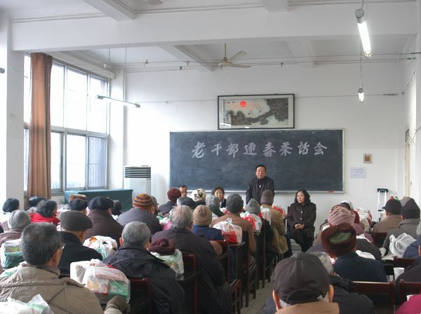 本网讯(记者吴晓星 摄影冯华周)1月9日下午,老干部迎春茶话会在离退休工作处会议室举行。校党委书记陆勤毅、纪委书记杨家芹和校党委原副书记江平、老红军吴显印等80多位老同志参加了茶话会。茶话会由离退休工作处处长樊晓泉主持。
