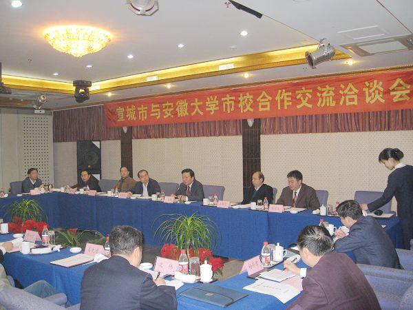 宣城市有关单位和我校学校办公室、研究生院(筹)、科学技术处、人文社会科学处等部门的有关负责人参加了商谈。