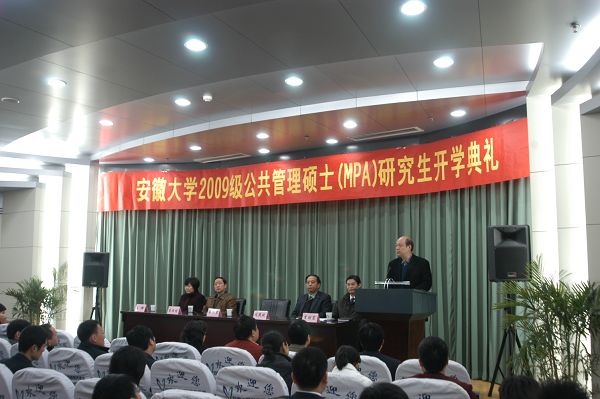 副校长兼研究生院(筹)院长王群京,解放军蚌埠坦克学校大校阎照斌,我校研究生院(筹)、管理学院、mpa中心负责同志及部分老师,与2009级全体mpa研究生一起参加了开学典礼。