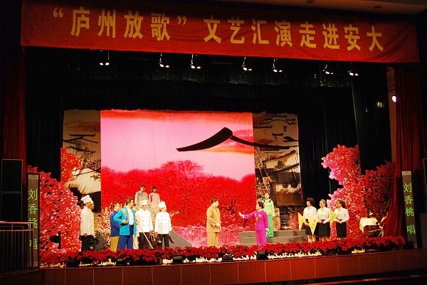 据了解,庐剧是以大别山和淮河一带的山歌、民歌、门歌、花鼓灯等民间歌舞为基础发展起来的安徽地方剧种,已被列入首批国家非物质文化遗产保护名单。《村长娘子》是市委宣传部、市文化广电新闻出版局组织的“庐州放歌——百场文艺下基层”巡演活动的主打剧目。为配合这次演出,学校办公室、校党委宣传部、保卫处、后勤集团及艺术学院、电子科学与技术学院、计算机科学与技术学院、化学化工学院等做了大量工作。