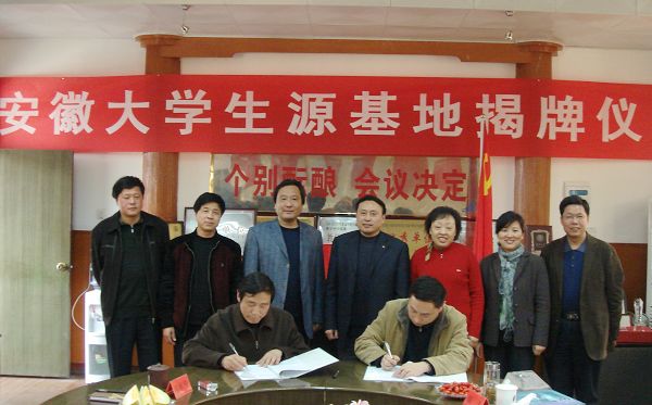 杨家芹为生源基地揭牌,我校教务处处长、招办主任李进华与两校签定了合作协议。黄山市教育局局长刘陆寿、党委副书记唐德金,休宁县教育局局长陈颖,屯溪一中校长查建宁,休宁中学校长胡建生,和两校有关领导分别参加了有关活动。