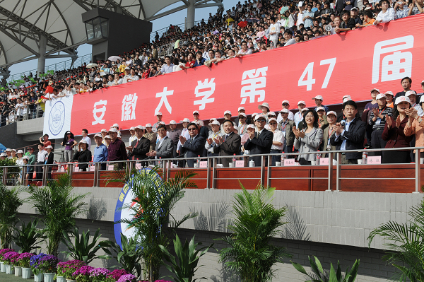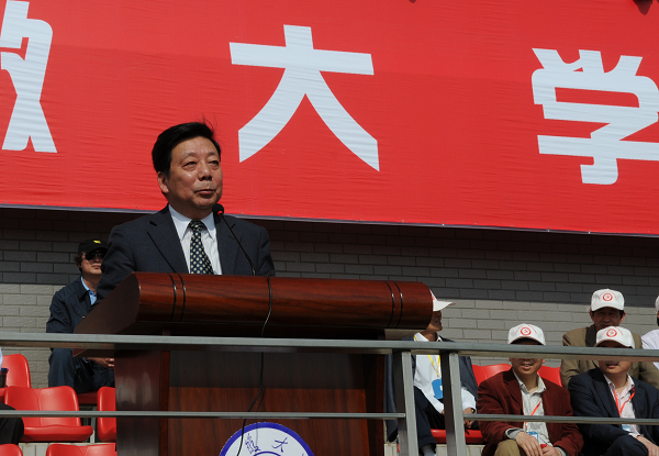 校党委书记陆勤毅宣布第47届田径运动会开幕,副校长杜先能致开幕词。运动会开幕式由党委副书记李仁群主持。