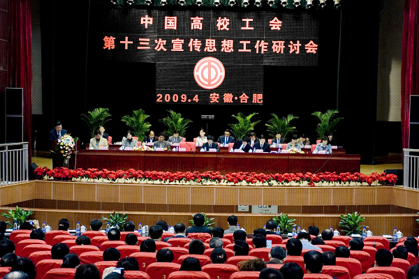 本次会议由我校工会和中国科学技术大学工会、合肥工业大学工会、安徽师范大学工会联合承办,会议的主题为推进民主、共建和谐、科学发展。中国教科文卫体工会主席王晓龙、安徽省委教育工委副书记高开华、安徽省总工会副主席孙勇、安徽省教育工会主席王昆奇,我校党委书记陆勤毅、中国科学技术大学党委副书记鹿明、合肥工业大学党委副书记江舒等,与来自全国107所高校的150多名代表出席了研讨会。
