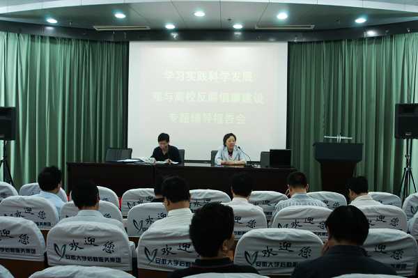 王宜在报告中指出,高校学习实践科学发展观要解决的重点问题就是高校领导党员干部的党性、党风、党纪问题,高校要高度重视并通过加强思想道德教育、党风廉政建设教育强化制度监督,确保高校反腐倡廉工作取得成效。