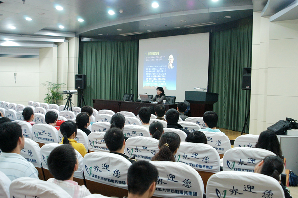 本网讯(记者梁 亮 摄影冯华周) 5月16日上午,首届李世雄奖教金获得者之一、我校化学化工学院教授沈玉华在龙河校区逸夫图书馆第二会议厅作题为《科学发现与创新思维》的报告。报告会由李世雄奖教金一届理事会理事长、原副校长韦穗主持。来自部分院系的研究生聆听了报告。