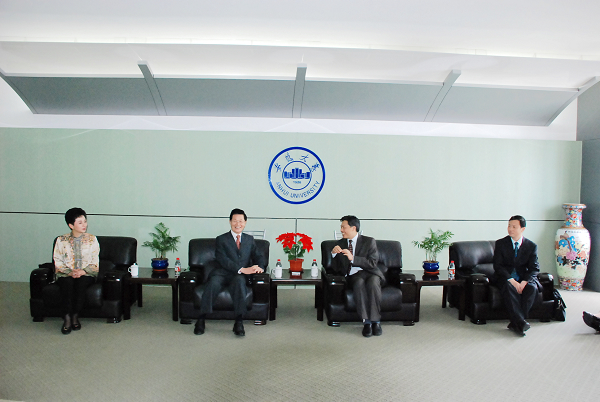 校长黄德宽在逸夫图书馆贵宾室会见了赵守博一行。会见中,双方就高等教育教育事业发展和两岸合作交流情况进行了愉快友好的交谈,认为在求同存异的基础上两岸应进一步加强交往、21世纪的教育应注重培养学生的世界眼光。