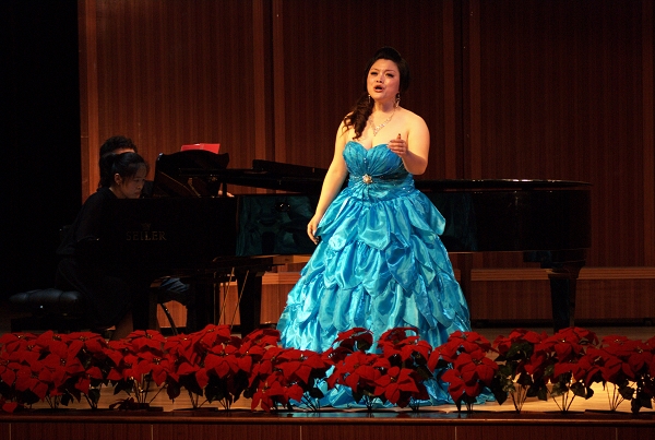 本网讯(记者纪云 摄影王松)“啊,美丽的土地,花开四季花万里,啊,美丽的土地,我们以心相吸……”5月31日晚,磬苑校区艺术楼小剧场内乐声飘扬,05级声乐表演专业毕业生李永苗的独唱音乐会在这里举行。