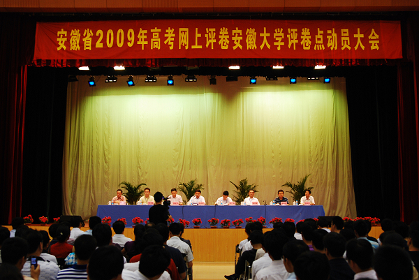 本网讯(记者鲍晓明 摄影刘志鹏)6月10日下午,学校在磬苑校区适之楼多功能厅召开高考阅卷动员大会。备受全省考生、家长和社会关注的2009年高考阅卷工作即将全面展开。我校今年承担高考语文科目主观题评阅任务,这是我校在连续5年圆满完成安徽省高考阅卷任务后再次承担此项重要工作。