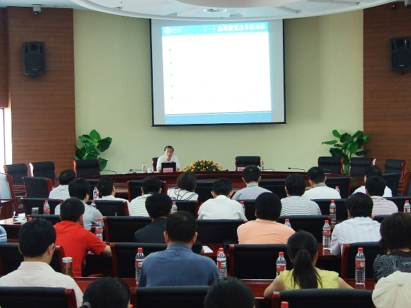 本网讯(新闻中心 摄影蔡小晓)为进一步推动科学发展观学习实践活动的深入开展,建设国际知名国内一流的高水平大学,6月17日上午,学校邀请国务院学位委员会委员、北京师范大学校长钟秉林教授在磬苑校区办公楼b204报告厅作关于“中国高等教育的发展和高等院校改革”的专题报告。