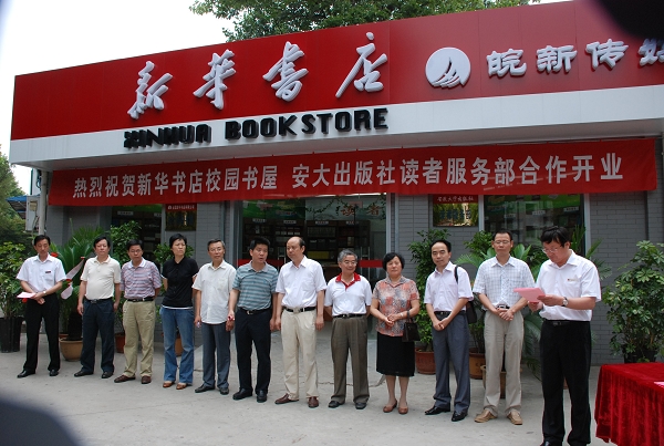本网讯(记者 冯华周)6月26上午,新华书店校园书屋、校出版社读者服务部合作开业仪式在龙河校区举行。副校长王群京,安徽新华传媒股份有限公司总经理吴文胜等出席仪式并发表讲话。