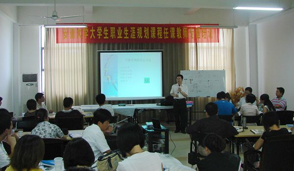 此项培训旨在进一步提升我校职业规划课程教学水平、推动2009级新生“启航工程”实施,专门邀请了北京北森测评技术有限公司首席培训师谢伟来校授课。培训内容涉及大学生职业规划学科前沿理论、大学生职业生涯规划课程授课方法与技巧等。