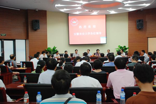 本网讯(记者鲍晓明 摄影冯华周)8月24日下午,安徽农业大学党委书记赵良庆、校长宛晓春等率该校全体处级以上干部来我校磬苑校区参观访问。校党委书记、校长黄德宽,校党委副书记李仁群,校纪委书记胡小松在办公楼b204会见了赵良庆、宛晓春一行。会见中,黄德宽介绍了磬苑校区规划建设情况,对赵良庆、宛晓春一行来校访问表示欢迎。他说,安徽大学与安徽农业大学有着深厚的友谊,希望两校加强交流与合作,共同为安徽高等教育和经济社会发展作出贡献。会见结束后,播放了我校80周年校庆宣传片《纪念从这里出发》。