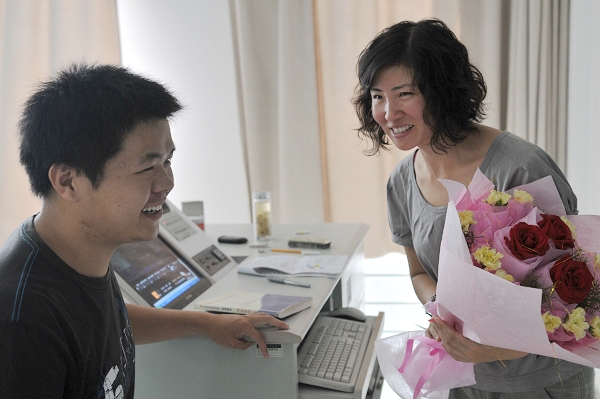快上课时,一个手捧康乃馨的男生脚步匆匆地走进了博学北楼b301,已经毕业的学姐托他送花给自己敬爱的老师。知道原委后,07财政学的管治华老师高兴地收下了这份礼物。“作为老师,我觉得应该把学生的需求放在第一位,真诚地对待他们。”管老师表达了对学生们的真挚情意。