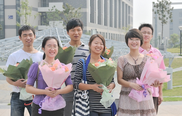 07对外汉语的6个同学捧着鲜艳欲滴的粉色玫瑰,说着笑着向人文楼走去。“老师们工作很辛苦,希望鲜花能给他们带去祝福,祝愿他们身体健康,快乐每一天。”领头的何玲有点腼腆地说。