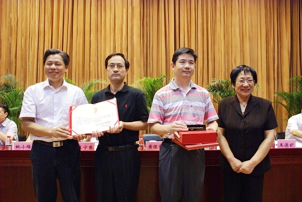黄德宽、韦穗为获得2009年“李世雄奖”的青年教师裘灵光、蒋长流颁奖,剧场内响起经久不息的掌声。黄德宽发表讲话,他指出,我校的每位老师都应该认真领会温家宝总理在北京35中调研时对教师提出的三点希望。一要充满爱心,忠诚事业。二要努力钻研,学为人师。三要以身作则,行为世范。黄德宽强调,今天的庆祝大会同时也是新进教师的迎新会,在此希望广大青年教师牢记温总理的话,做好自己的本职工作。