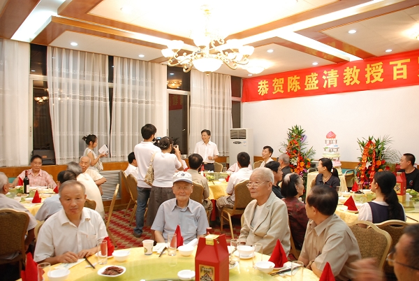 9月10日晚上,我校在龙河校区外宾接待中心举行仪式,为法学院陈盛清教授百岁华诞祝寿。