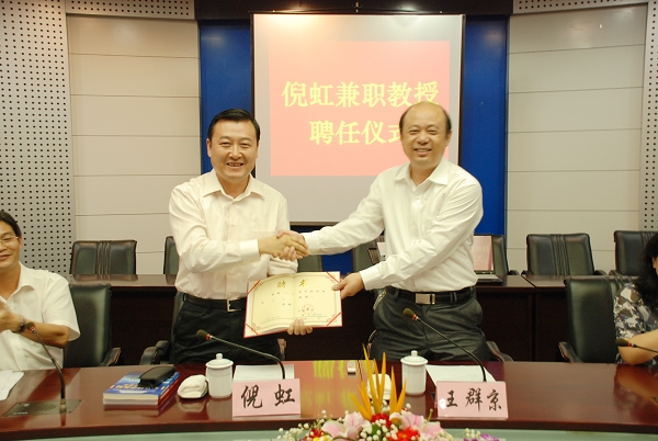 本网讯(记者张号 摄影冯华周)9月17日下午,学校在龙河校区逸夫图书馆第三报告厅举行仪式,聘请省建设厅厅长倪虹为我校兼职教授。管理学院院长李财富主持仪式,管理学院全体领导班子和部分老师参加了受聘仪式。副校长王群京为倪虹颁发聘书并发表讲话。倪虹表示,他会珍惜此次契机,与安大学子分享新经验,共同学习,共商大计,为安徽建设全力以赴。聘任仪式之后,倪虹应邀为管理学院mpa学员作了题为《城市建设理念的创新与实践》的报告。