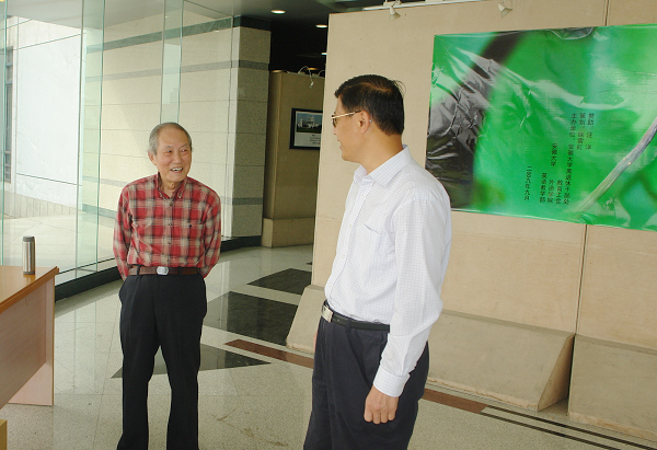 本网讯(记者蔡小晓 摄影冯华周)为给祖国60华诞献礼,9月22日,我校外语学院离休教师马祖毅和大学英语教学部离休教师史锡康合作的摄影配诗展《三丑二人展选粹》在龙河校区逸夫图书馆艺术展厅开展。