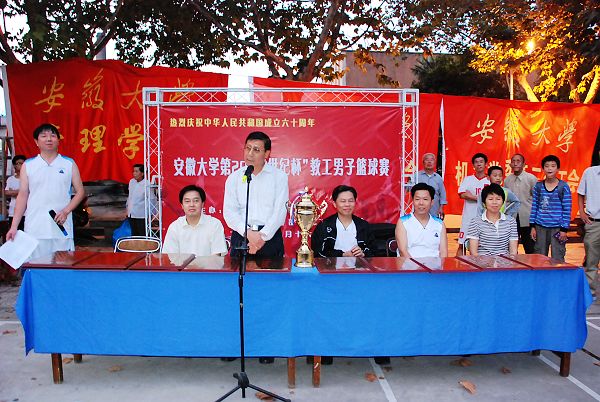 李仁群向参赛的各代表队表示感谢,他说,此次教工男子篮球赛是我校庆祝国庆六十华诞的活动之一。比赛期间,赛场上助威声此起彼伏,校园里充满了激昂而欢乐的气氛,是学校一道亮丽的风景线。李仁群表示,希望“世纪杯”男子篮球赛越办越好,带动学校健身运动的蓬勃展开,以创造一个和谐而美好的校园。