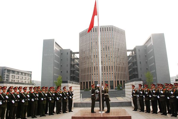 本网讯(记者冯华周)10月1日晨,我校国防生在磬苑校区鸣磬广场隆重举行升旗仪式。200余名国防生和部分在校学生怀着激动的心情,聚集在鲜艳的五星红旗下,共同庆贺祖国母亲60华诞。8时整,升旗仪式正式开始。飒爽英姿的国旗护卫队员,迈着整齐的步伐,护送国旗走向广场升旗台。雄壮的国歌响起,随着一声铿锵有力的“敬礼”,鲜艳的五星红旗伴着早晨的阳光、在同学们的注目下冉冉升起,高昂的国歌响彻校园。同学们心中荡漾着深情,共同祝福祖国蒸蒸日上、繁荣昌盛、日益强大。